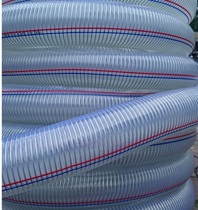 Sản phẩm Ống nhựa mềm lõi thép đường kính từ 100mm trở lên được ứng dụng rất nhiều trong ngành công nghiệp và sản xuất. Sản phẩm có ưu điểm cấu tạo từ nhựa mềm PVC và lõi thép lò xo định hình quanh thân ống, giúp cho ống không bị móp méo, gãy gập, tăng tuổi thọ sử dụng ống. Nhựa PVC trong suốt có thể dễ dàng nhìn thấy các chất dẫn chạy trong ống.